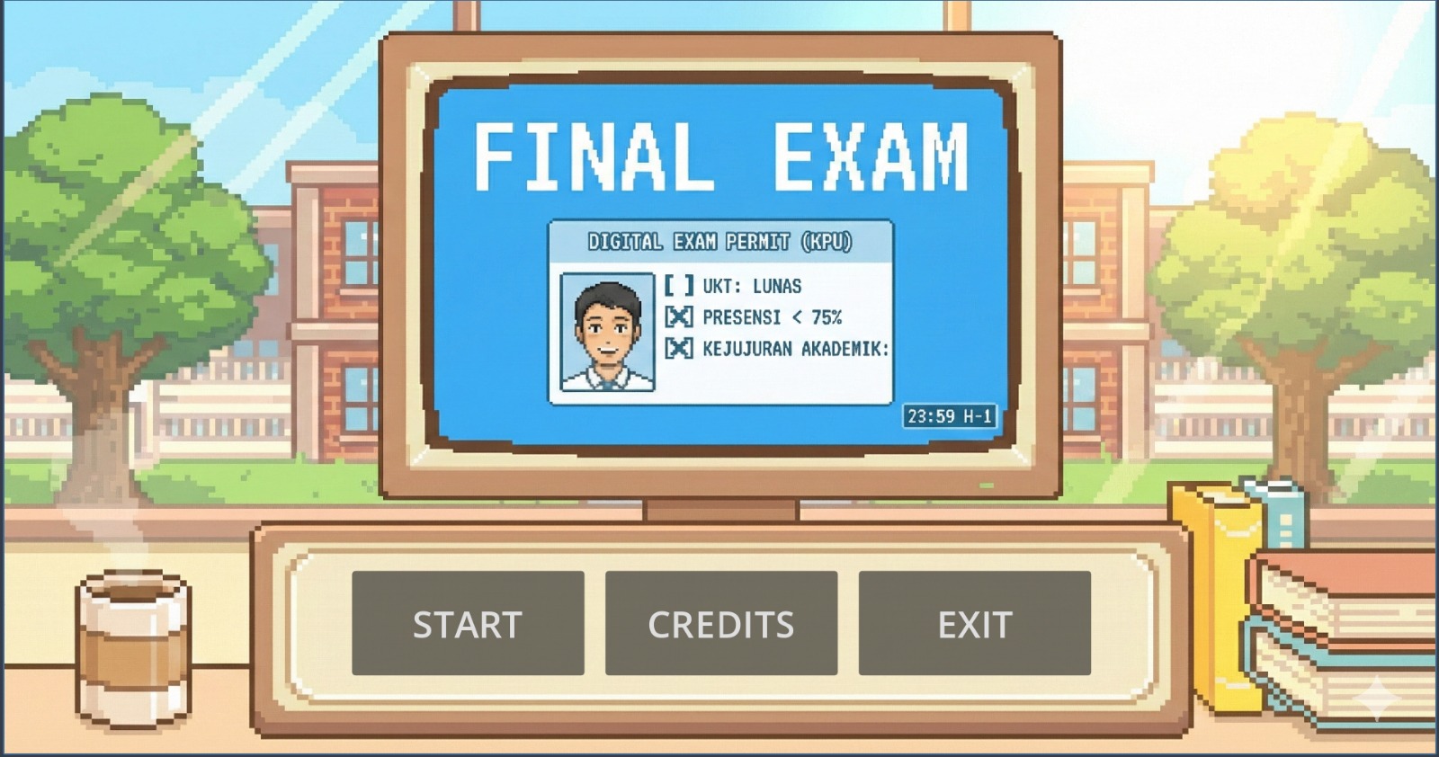 "Final Exam", sebuah game simulasi 2D Top-Down Visual Novel yang mengajak kamu merasakan pengalaman nyata menghadapi pekan UAS di FILKOM UB.